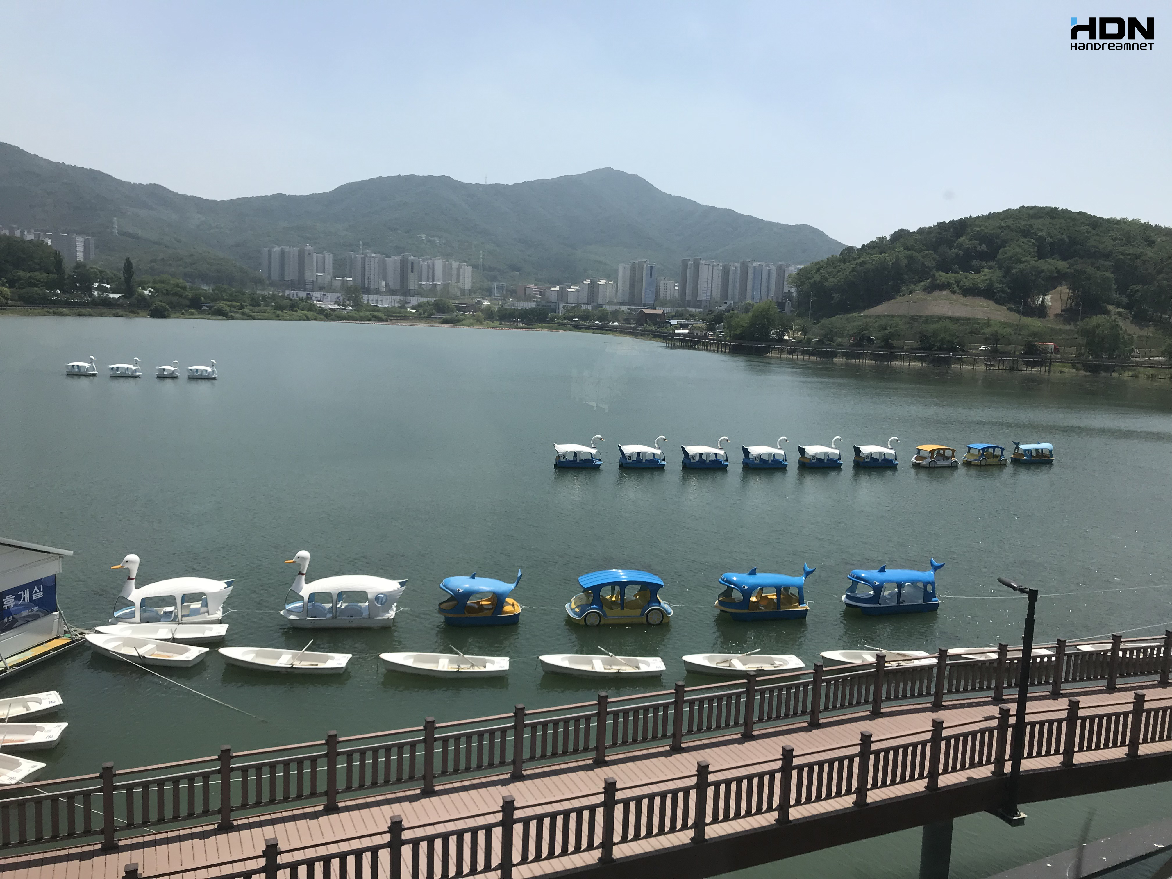 한정식으로 배부르게 먹고 난 뒤, 2차는 백운호수가 보이는 카페로 고우고우!