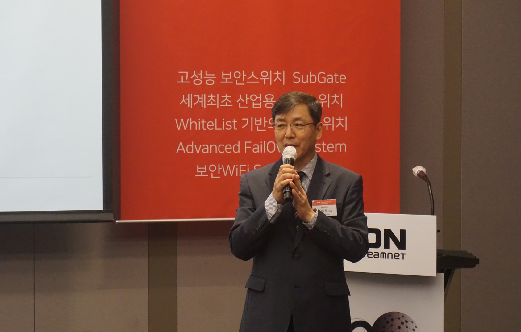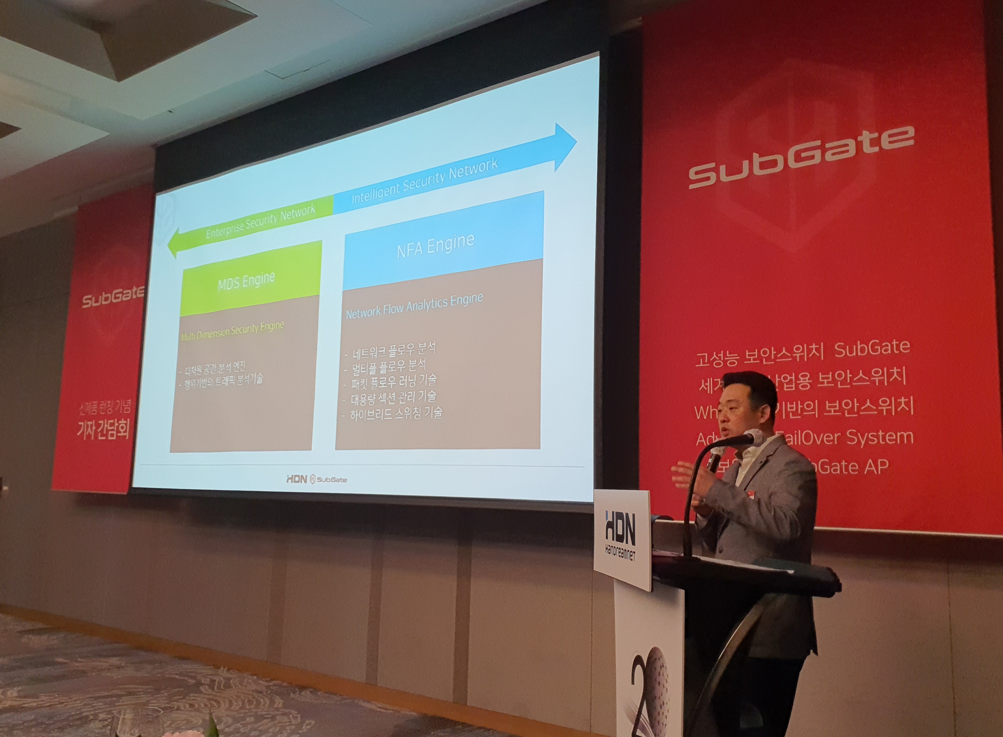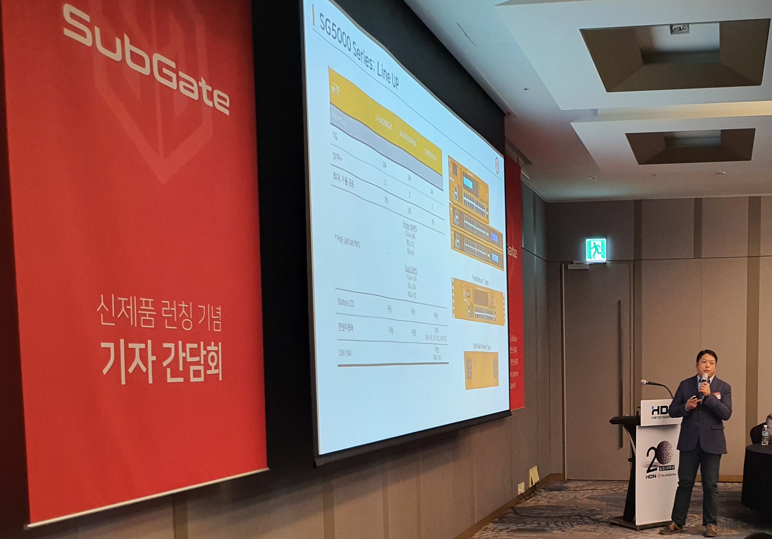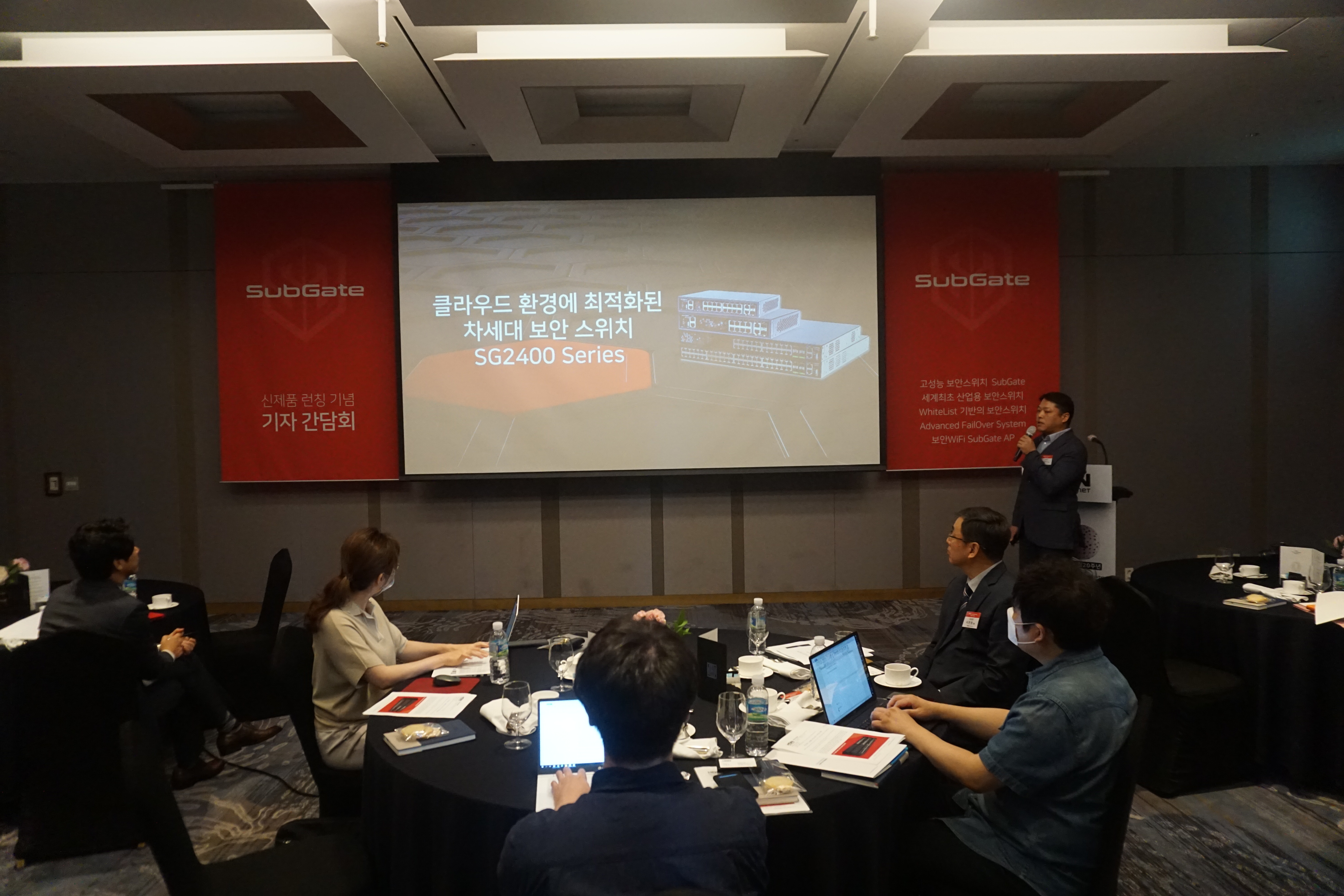 한드림넷은 기자간담회를 통해 공식적으로 신제품 ▲클라우드 환경에 최적화된 차세대 보안 스위치 ‘서브게이트2400시리즈(SubGate 2400 Series)’ ▲화이트리스트 기반의 보안스위치 ‘에스지5026지엑스(SG5026GX)’, ▲세계 최초 산업용 보안스위치 ‘아이에스지2000시리즈(Industrial SubGate 2000 Series)’, ▲지능형 페일오버 스위치 ‘에이포스(AFOS)’, ▲MDS엔진을 탑재한 보안 액세스 포인트 ’서브게이트 에이피(SubGate AP)’ 등을 공개했습니다.