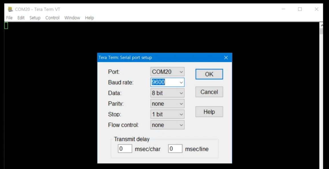 콘솔로 접속 -> setup -> Serial port -> Baud rate값 9600으로 설정