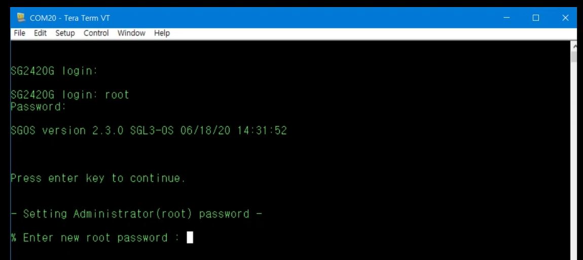 초기 로그인 계정인 ID:root / Password:root를 사용해서 접속하면 비밀번호 변경을 위한 안내 메시지가 출력됩니다.