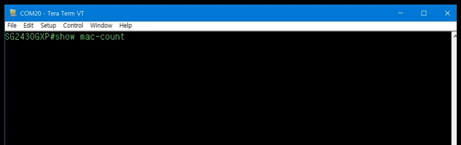 Show mac-count명령을 입력하면, 위와 같이 Interface별로 몇 개의 MAC 주소가 수집되었는지 확인할 수 있습니다.