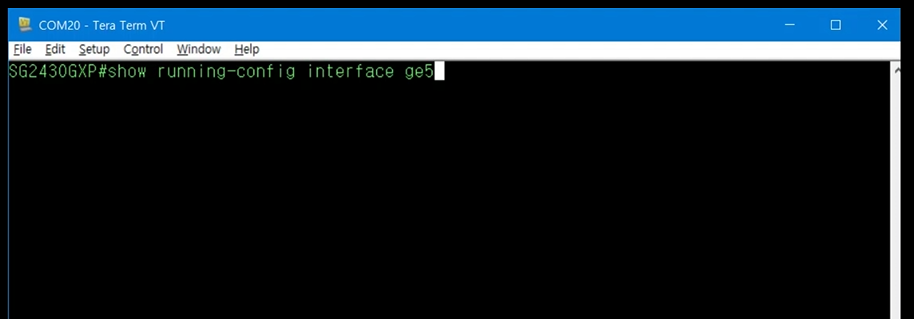 예시) 예를 들어 Interface 5번의 설정 상태를 확인할 때는 위와 같이 ge5를 입력해서 확인합니다.