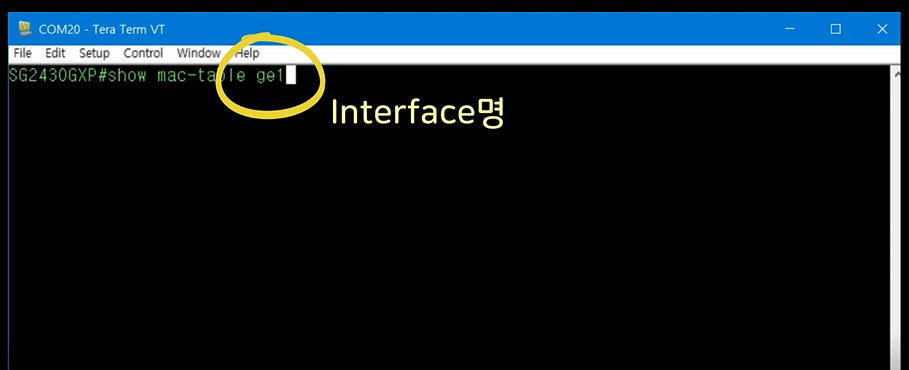 예시) Interface ge1에서 수집된 맥 정보를 확인하려면, show man-table ge1을 입력하면 됩니다. ( 위 사진 참고)