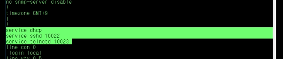 예제에서는 Telnet의 Service Port를 10023번으로 변경하기 위해 service telnetd 10023을 입력했습니다. 그리고 SSH의 Service Port를 10022번으로 변경하기 위해 service sshd 10022를 입력했습니다.