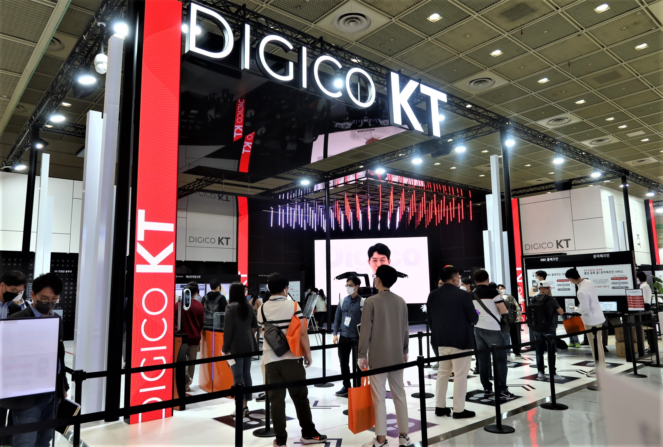 그 옆으로 가면 해당 전시회에서 제일 많은 관람객이 방문하는 곳!! KT, SKT, 삼성전자, LG전자가 자리하고 있습니다 ~