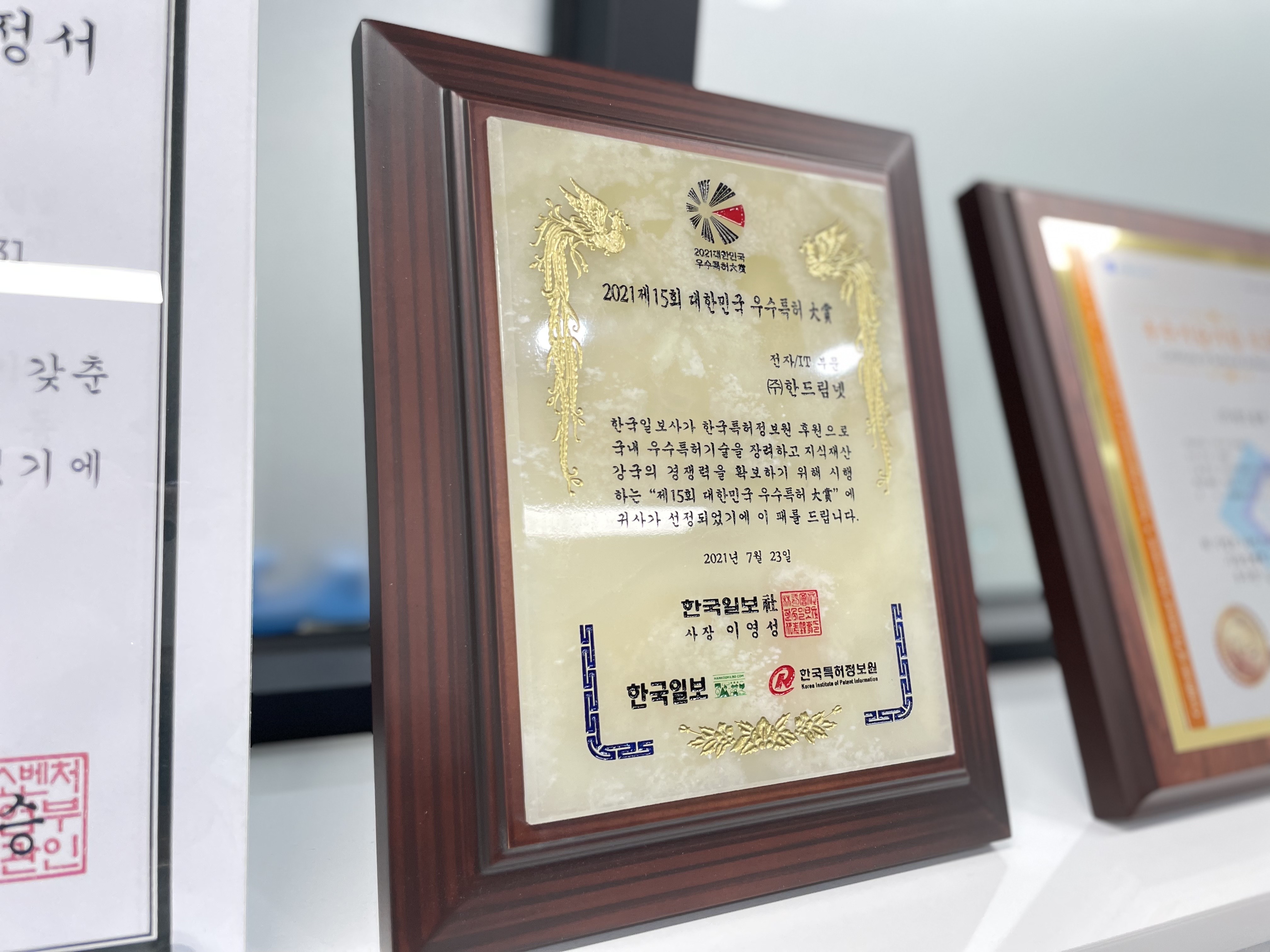한국일보와 특허정보원이 주최/후원하는 "2021 상반기 대한민국 우수특허대상"을 수상하였습니다!!