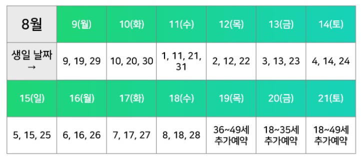 36~49세 (1972년 1월 1일 ~ 1985년 12월 31일 출생자) 8월 19일 20시~8월 20일 18시