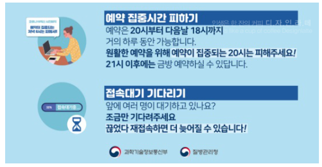 대기자가 너무 많다고 새로고침 누른가더나 접속을 끊었다가 재접속하면 더 늦어지니 조금만 기다렸다가 예약 성공하세요!