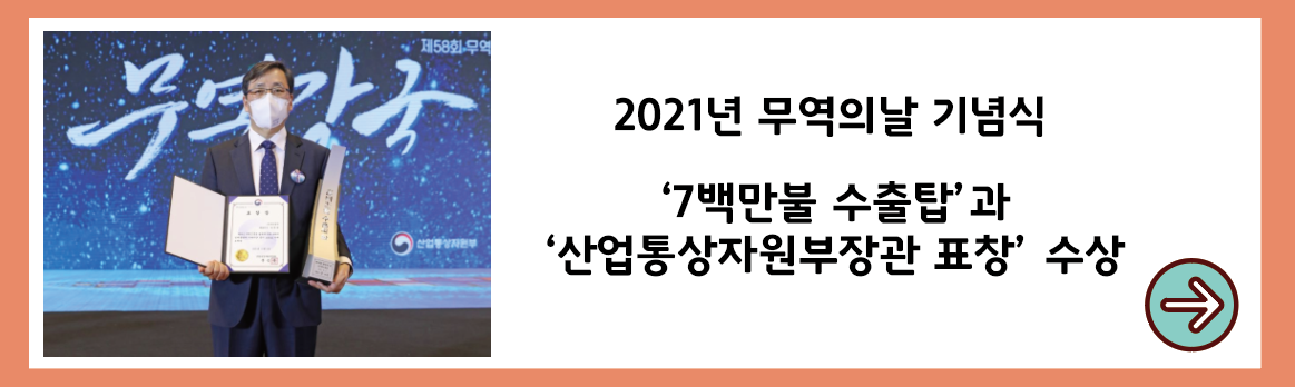 | 한드림넷, 2021년 무역의날 기념식에서 ‘7백만불 수출탑’과 ‘산업통상자원부장관 표창’을 수상! (0) | 2021.12.07 |