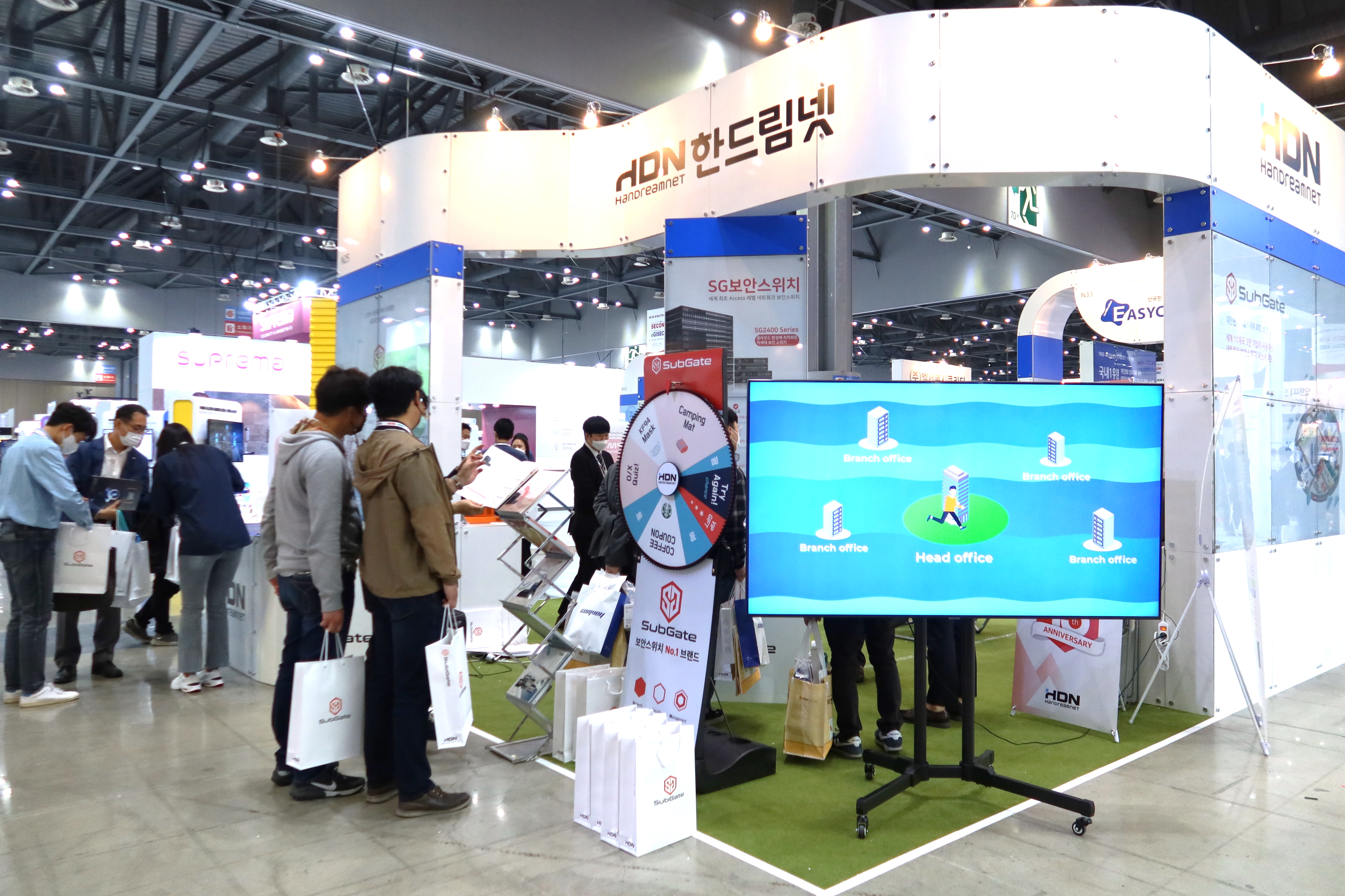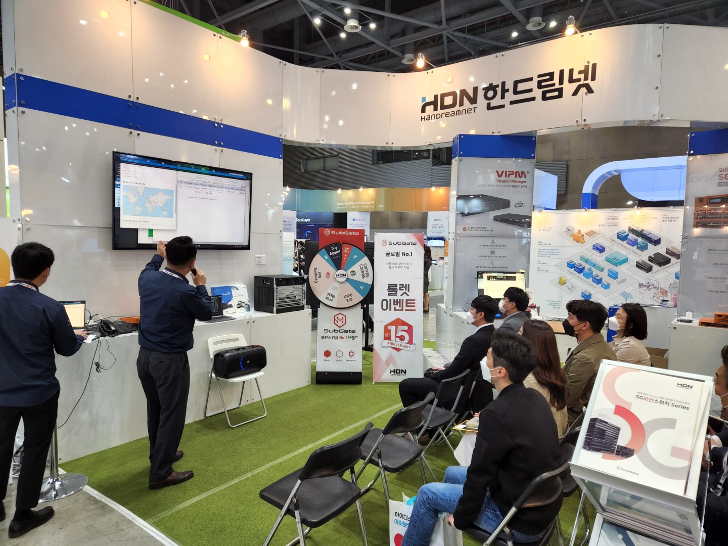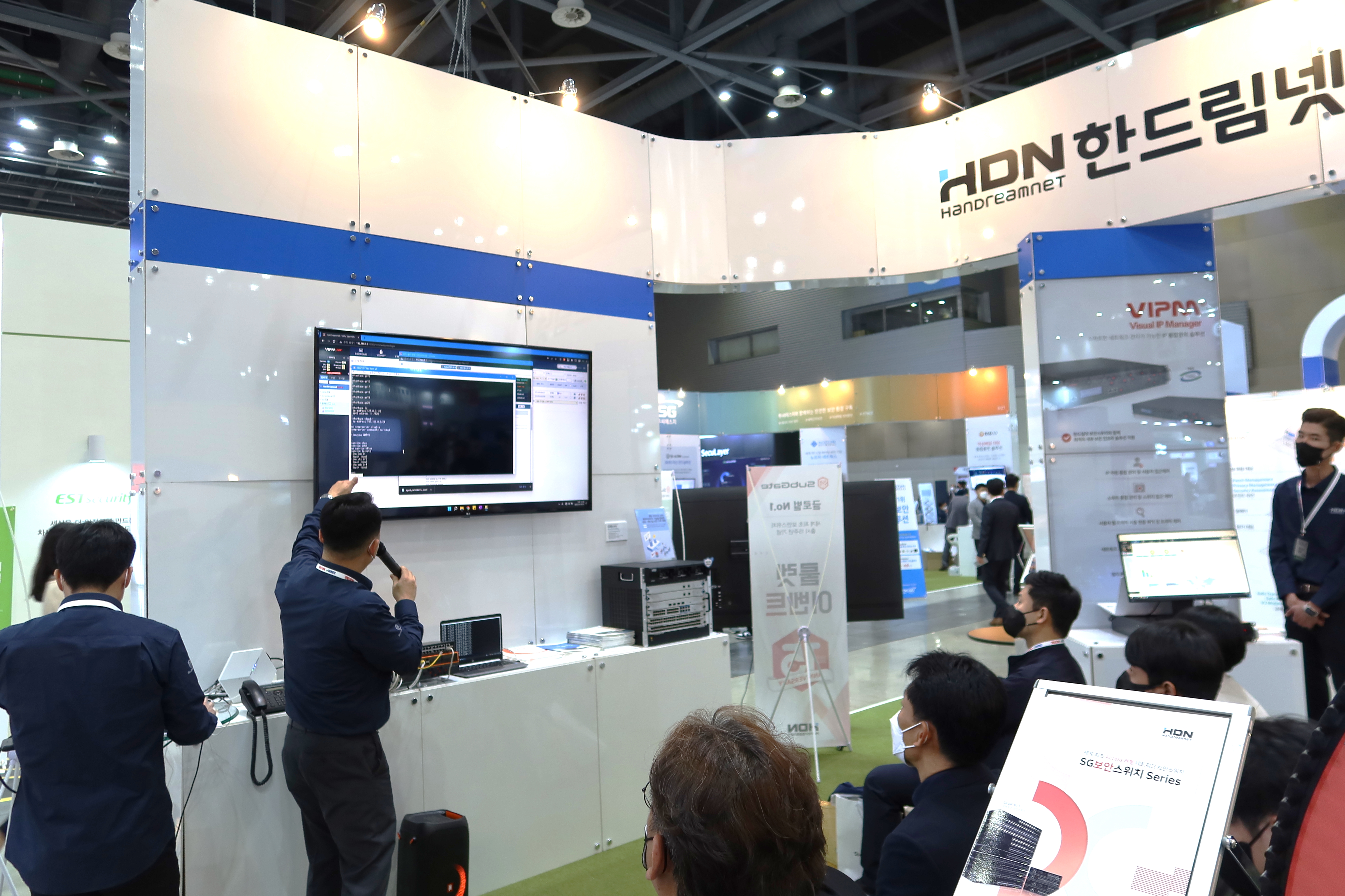 한드림넷 부스 전경과 장비들을 먼저 소개해드려야 할 것 같아요!