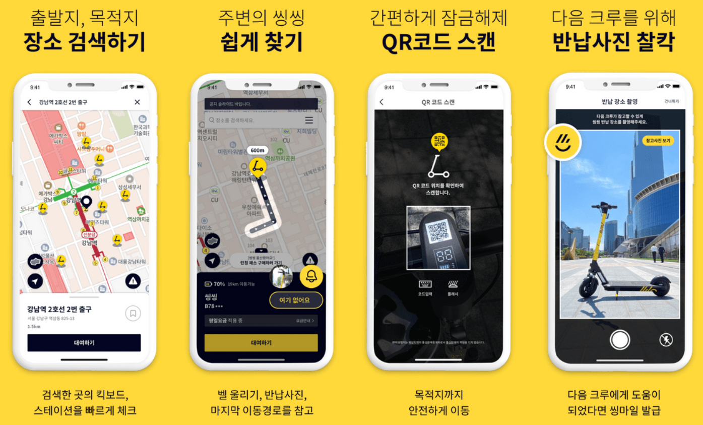 위 사용설명은 씽씽 사용설명입니다! 다른 회사의 사용방법 동일하니 참고해주시길 바랍니다!