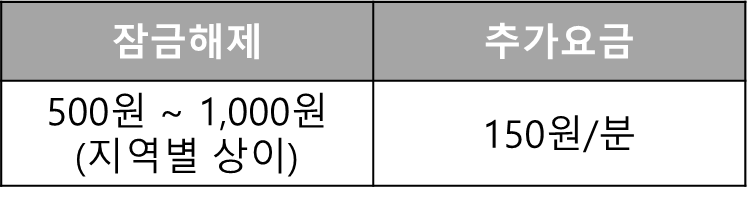 잠금 해제의 비용은 800원! 그리고 분당 180원의 가격이 고정이라고 합니다.