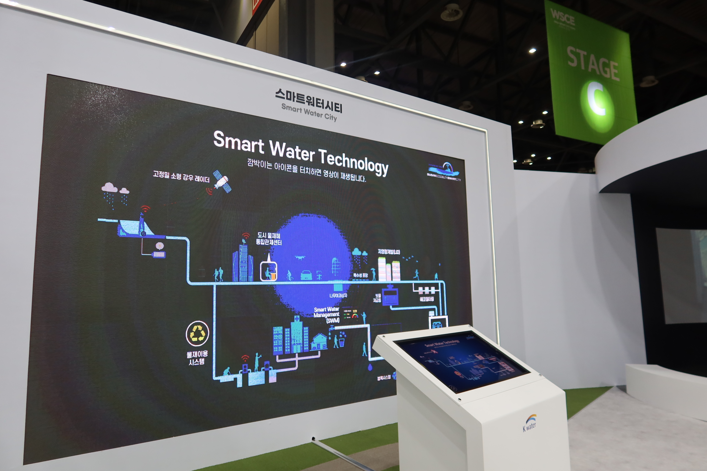 그다음 소개해드릴 부스는 K-water, 수자원공사의 부스입니다. 입구부터 인상적인 3D 영상을 확인할 수 있었는데요,