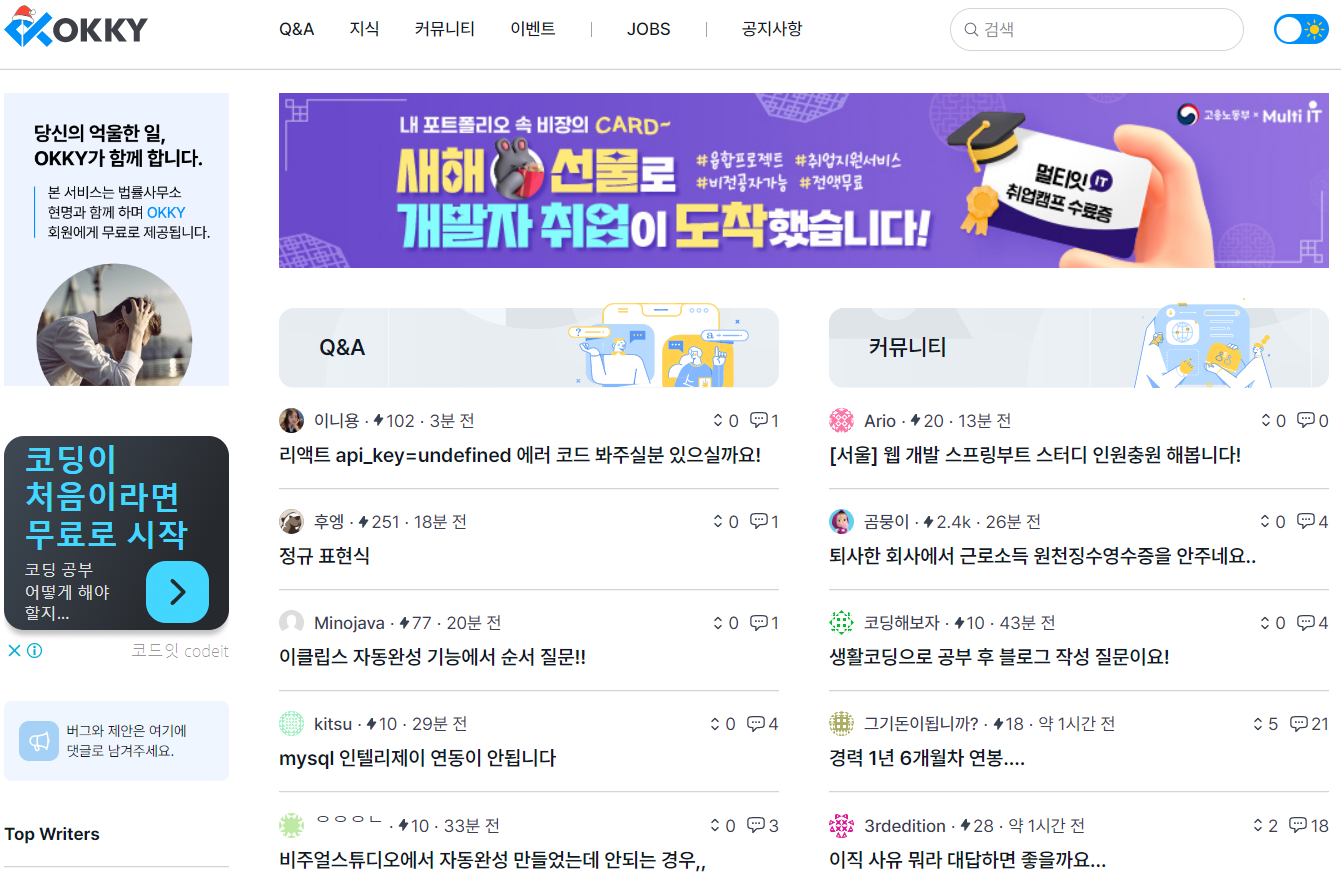 OKKY는 국내 최대 개발자 지식공유 플랫폼입니다. 개발자에게 필요한 기술 Q&A, 아티클, 커리어, 네트워킹, 취업, IT행사를 지원합니다