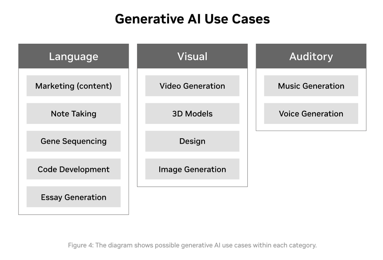 엔비디아는 Generative AI를 크리에이터, 엔지니어, 연구원, 과학자의 연구 프로세스를 간소화하는 강력한 도구로 소개하고 있습니다. 생성형 AI의 활용 관련한 사용 사례와 가능성이 모든 사업 / 개인에게 열려있다고 표현합니다.
