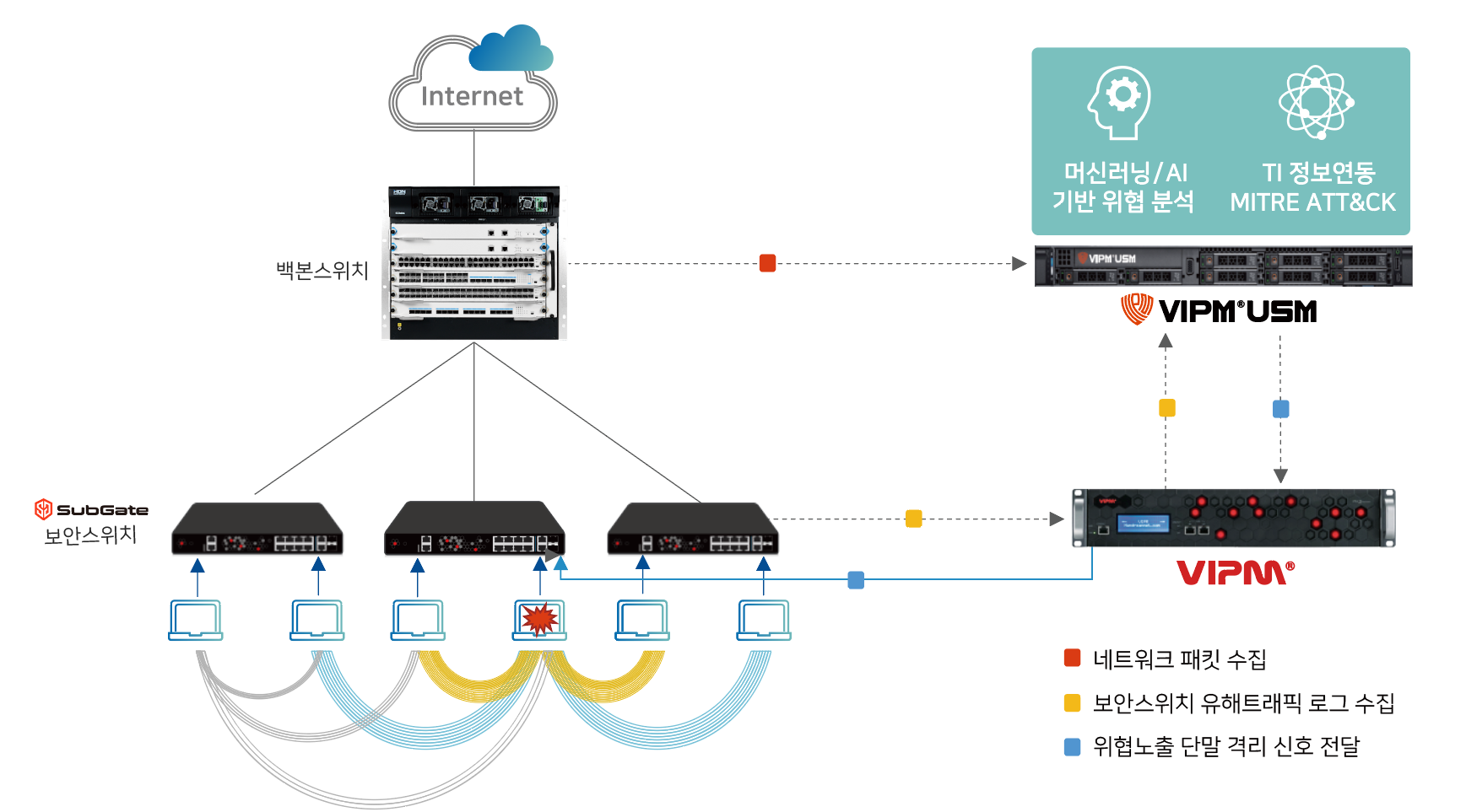 VIPM-USM은 네트워크에서 발생하는 트래픽 정보와 보안 위협이 될 수 있는 정보를 추출하고,